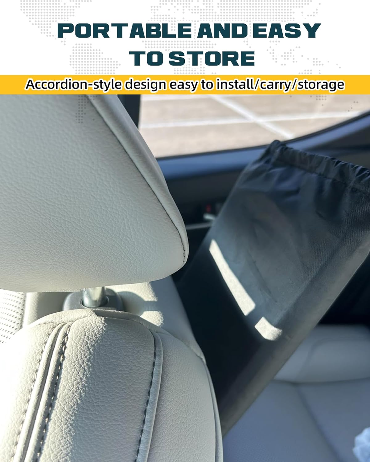 - EASY DAILY STORAGE: With Velcro strap and carry pouch, the Tacoma windshield sun shade stows neatly behind the seat or in the seat-back pocket—always within reach for daily commuters or outdoor parking Tacoma accessories