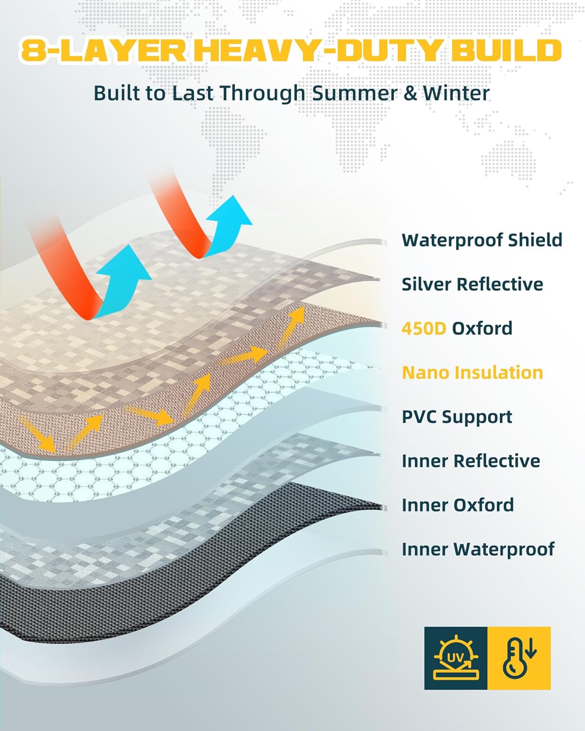 - 8-LAYER DURABILITY: Dual waterproof coats, two silver reflective layers, rugged 450D Oxford fabric, nano thermal insulation, and flexible PVC core—built tough for truck sun shade durability so you don’t waste money on flimsy foldable “paper” shades every summer