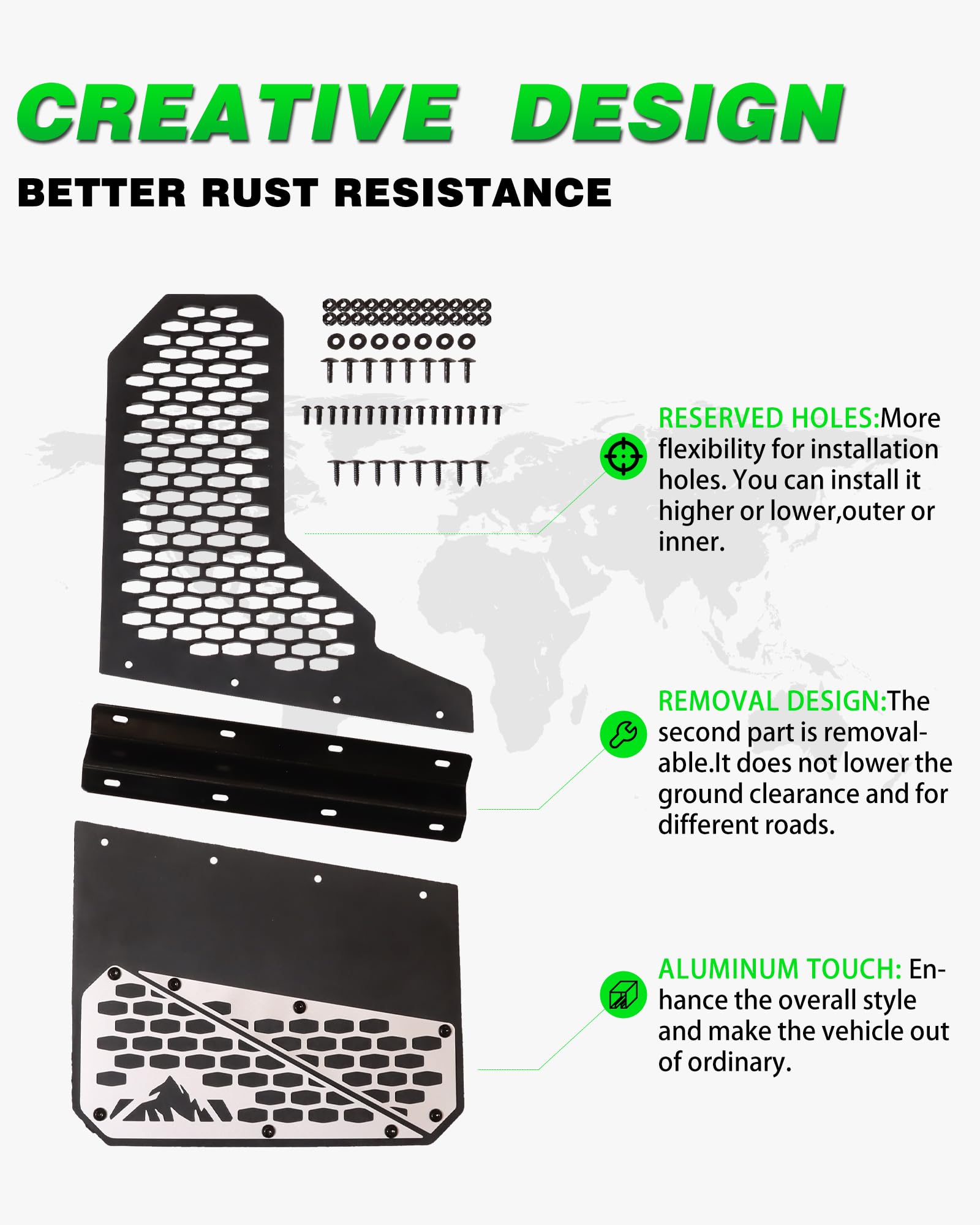 - Enhanced Protection: Say goodbye to mud and water splashes with our splash guards, keeping your truck clean and protected from road debris, enhancing its appearance and longevity.