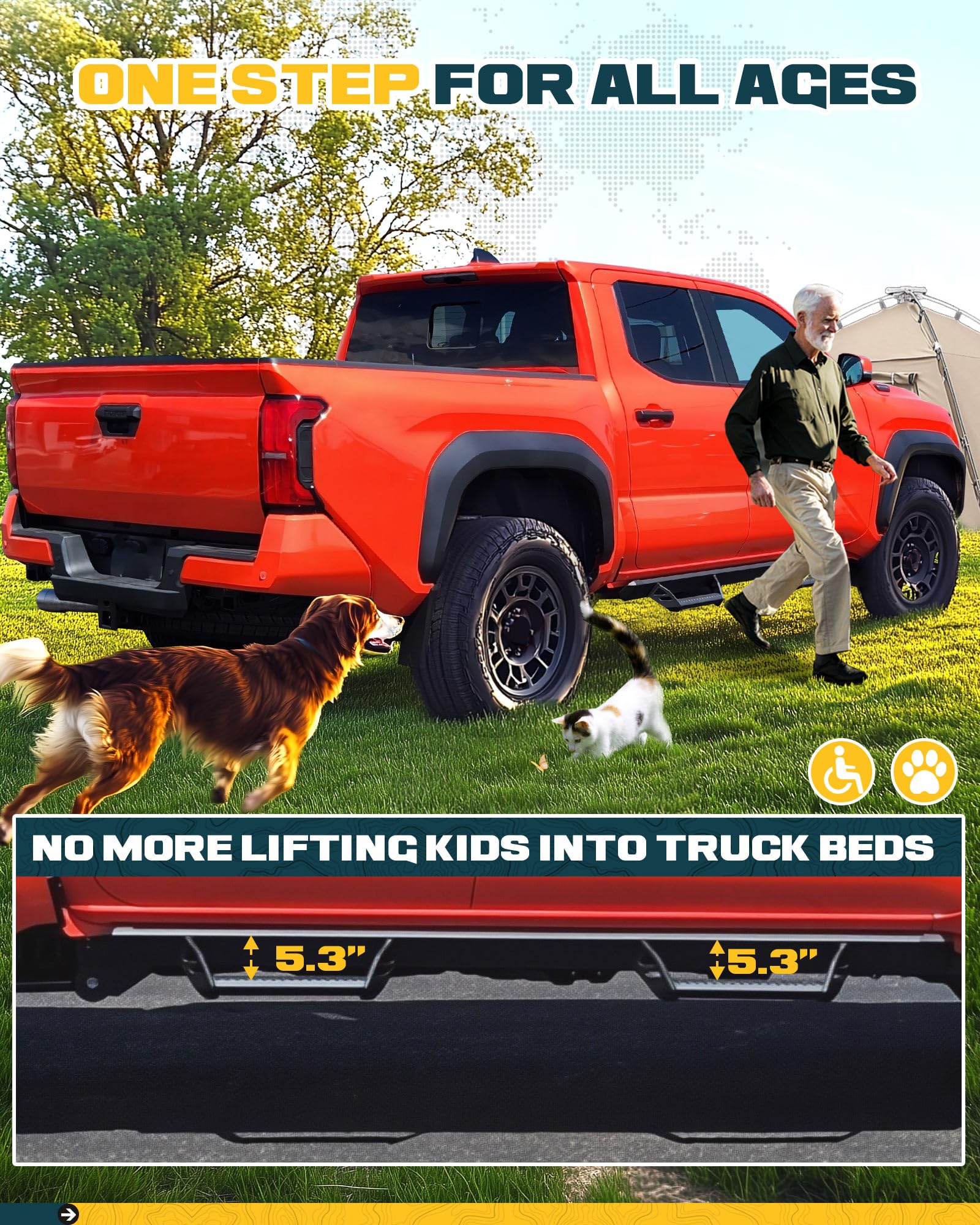 - Family-Friendly Low-Profile Design: 5" drop step positions the stepping surface closer to ground level, making it 40% easier for kids/pets/seniors to enter. Diamond-tread pattern provides secure footing even with muddy boots during camping trips. Rounded edges eliminate shin-scraping hazards