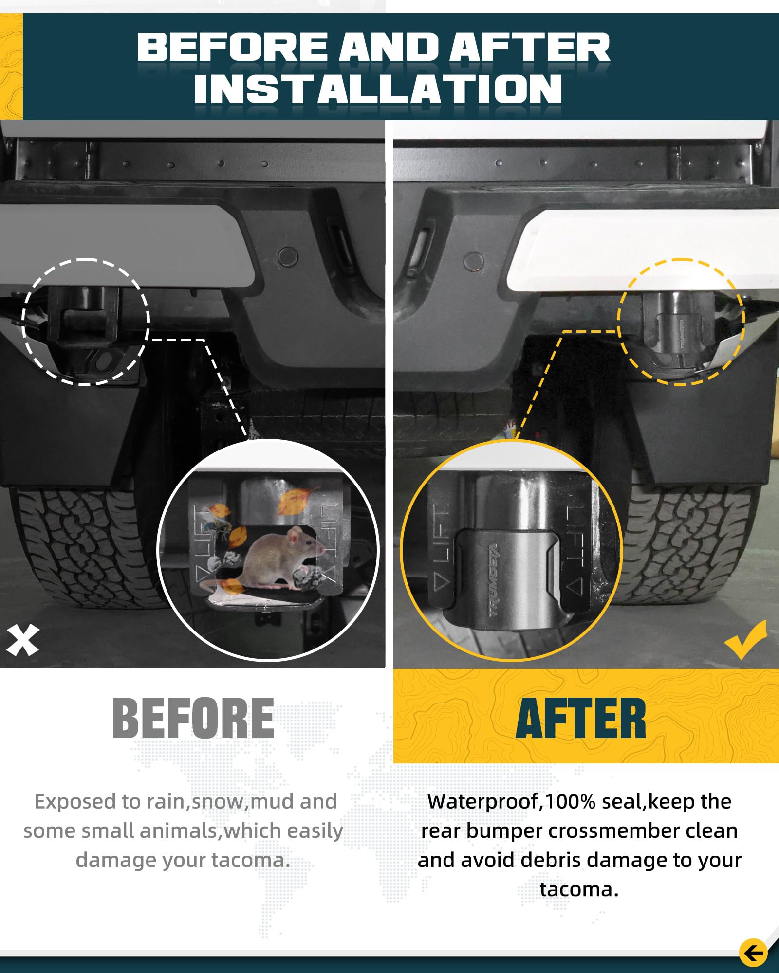 - MULTI-FUNCTIONAL PROTECTION: Protects against mud, snow, and ice buildup while preventing internal rust. It also deters mice and other animals from nesting inside, safeguarding your tacoma's wiring.